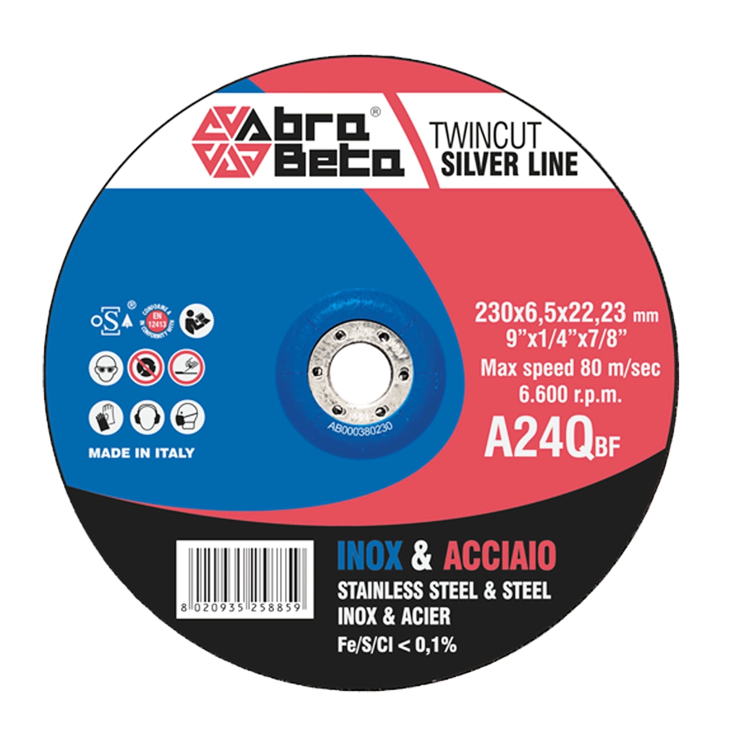 Grinding disc Abra Beta A24Q, can be used for deburring steels, stainless steels and cast irons.