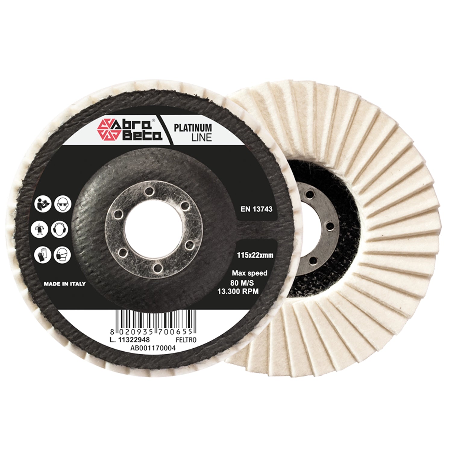 Mono Flap Disc Abra Beta Felt, usable for polishing operations on all types of steel, combined with abrasive polishing pastes.