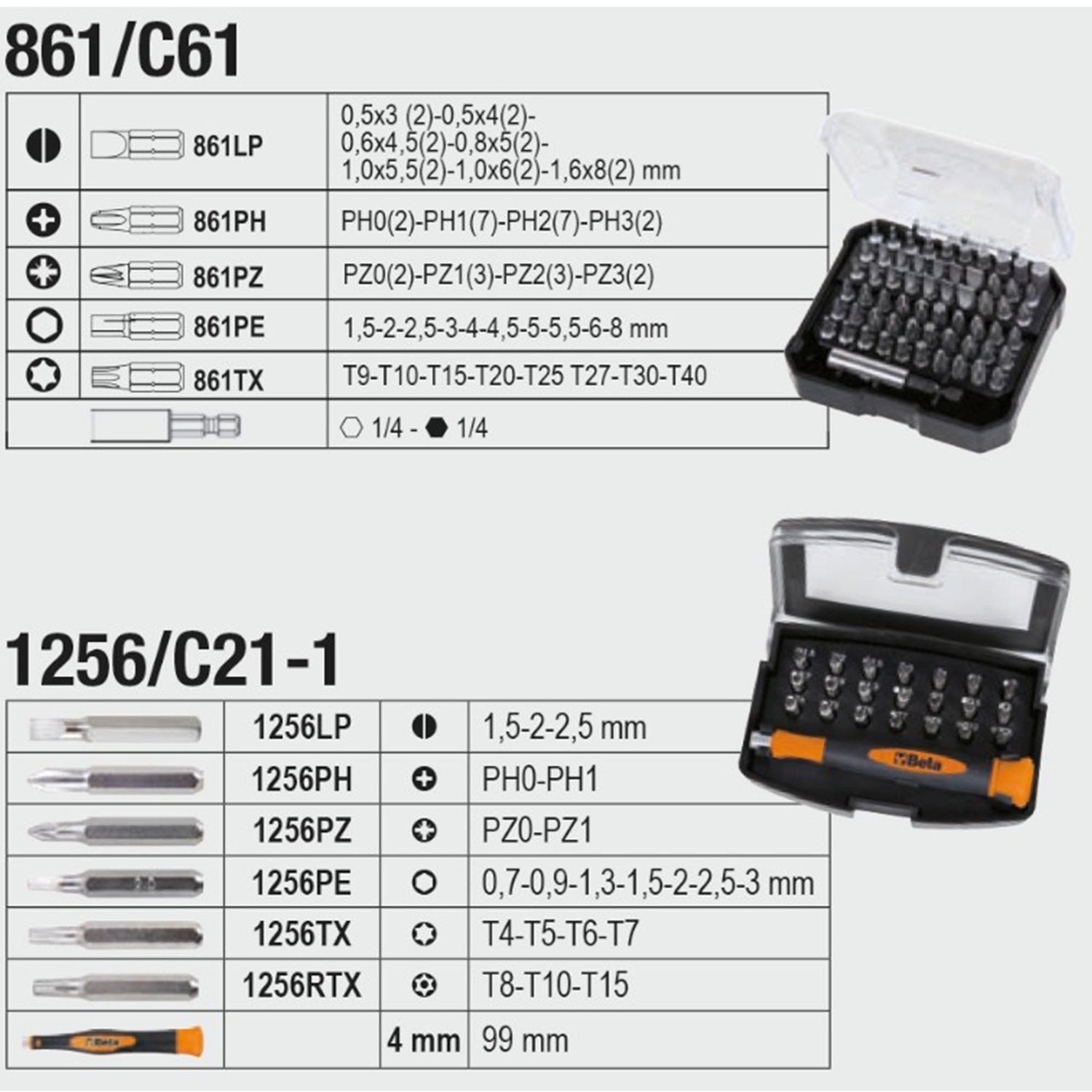 Accessories included: Kit 861/C61 and 1256/C21-1, for even greater versatility in applications.