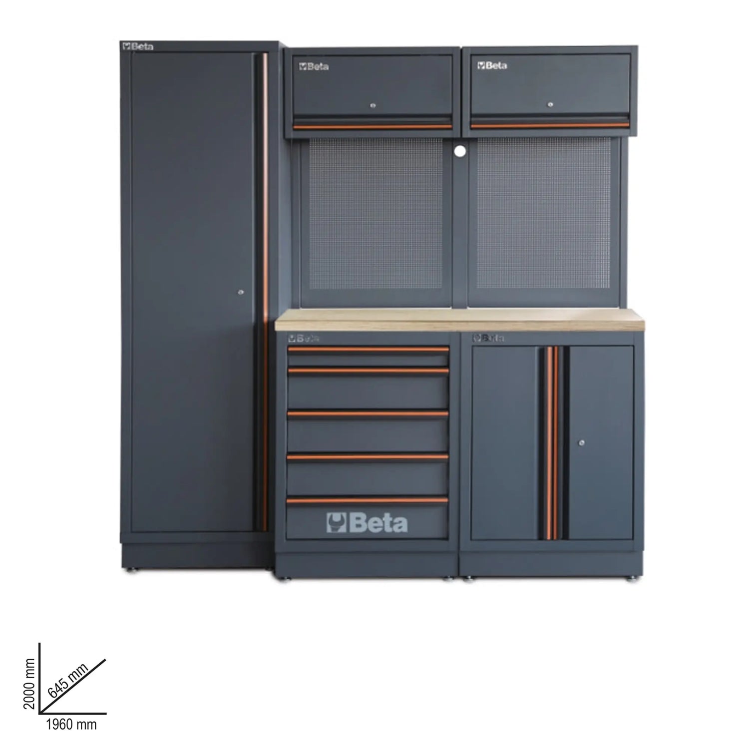 THE'Workshop Furniture Beta C45PRO 2.0 BW It is the ideal solution for professionals who want a highly organized, functional, and modernly designed work environment. This linear configuration, with a total length of 1,960 mm, offers a complete and versatile workstation, adaptable to different operational needs.()