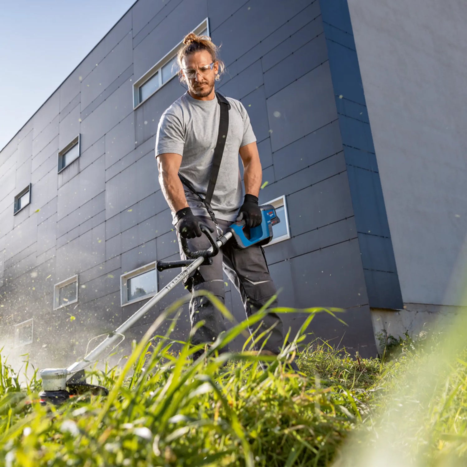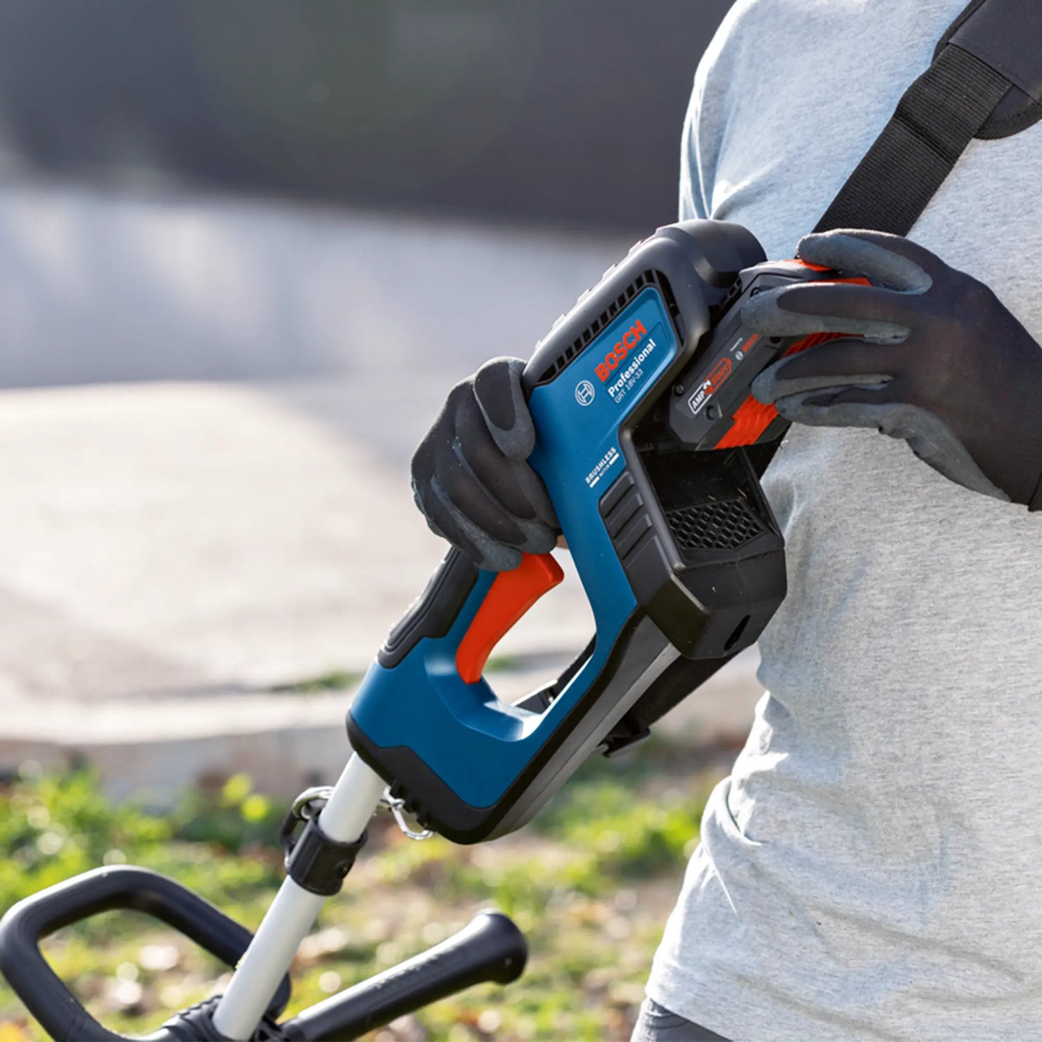 The Battery-powered trimmer Bosch GRT 18V-33 Professional is designed to offer a constant power, extended autonomy and an excellent handling even in the most demanding cutting situations. Equipped with a brushless motor housed in a aluminum casing durable, this trimmer is perfect for trimming tall grass, edges and areas with stubborn weeds.