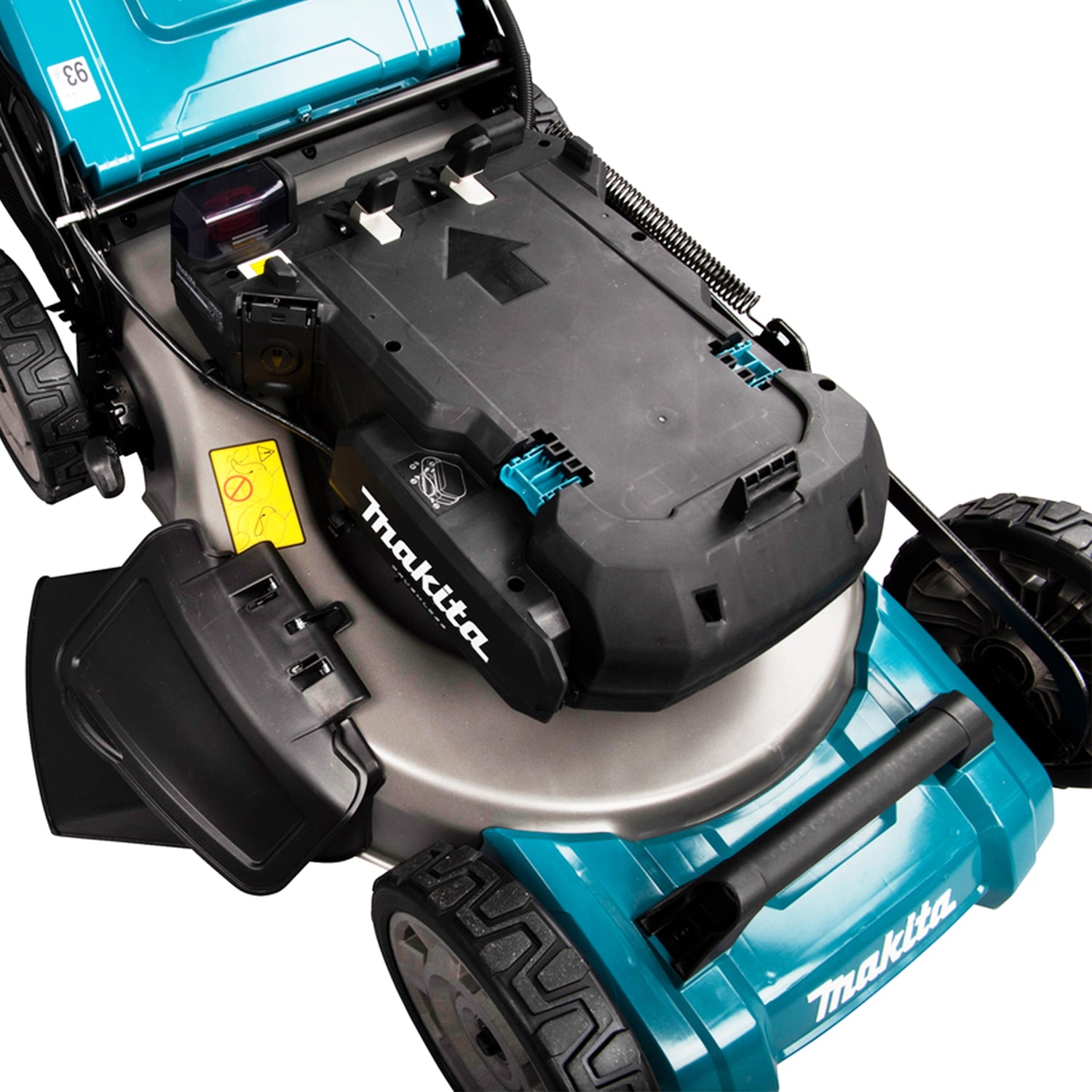 Lawnmower Makita LM001CZ 40V, Self-propelled lawnmower powered by Zaini Power Pack PDC01 (4 18V LXT batteries) or PDC1200A01 (40Vmax power supply unit) recommended for surfaces up to 6,900 m².