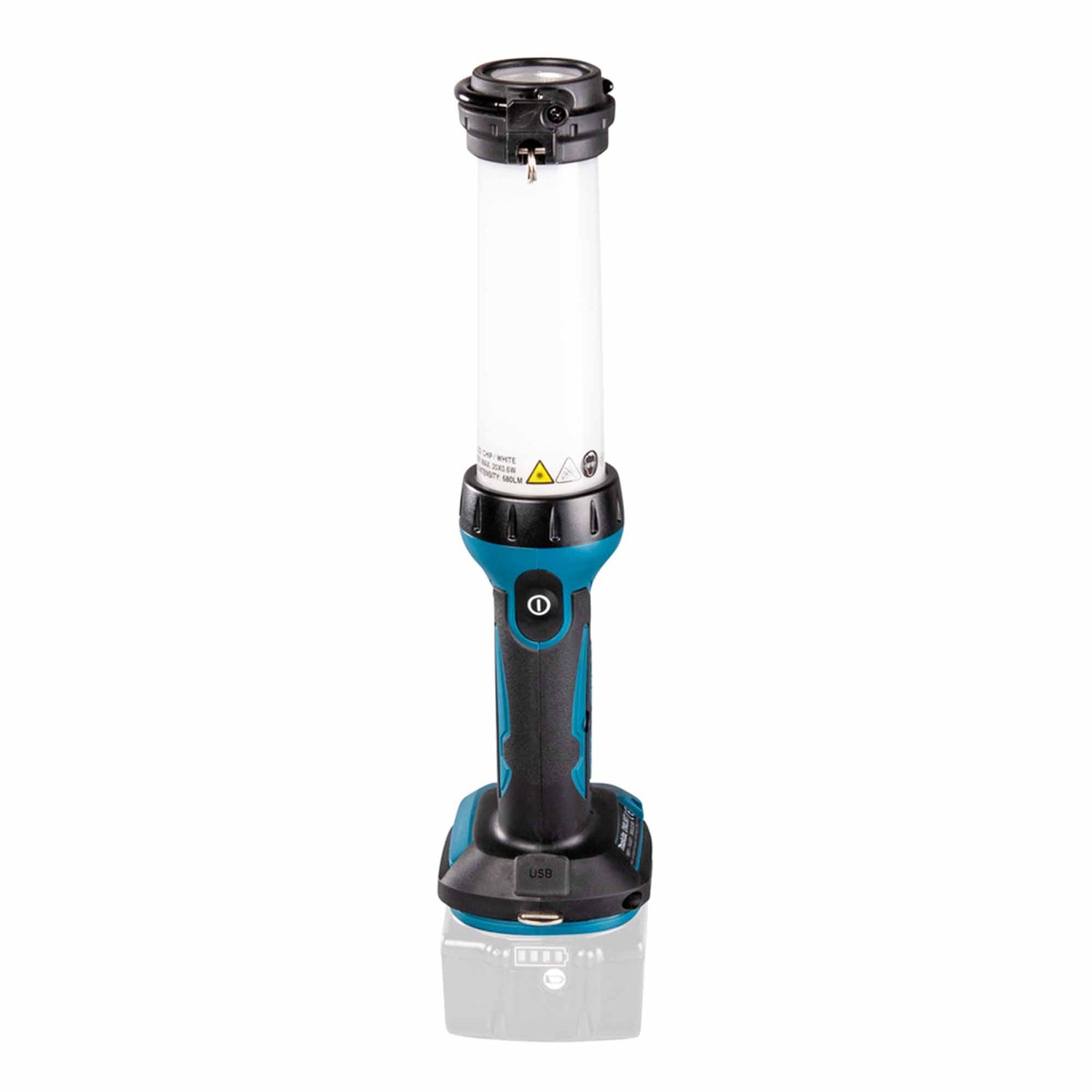 The LED Torch Makita DECDML807 18V, Powerful tube lamp with three light modes and USB connection. A lamp for 14.4V and 18V LXT® batteries with three light modes and a USB connection.
