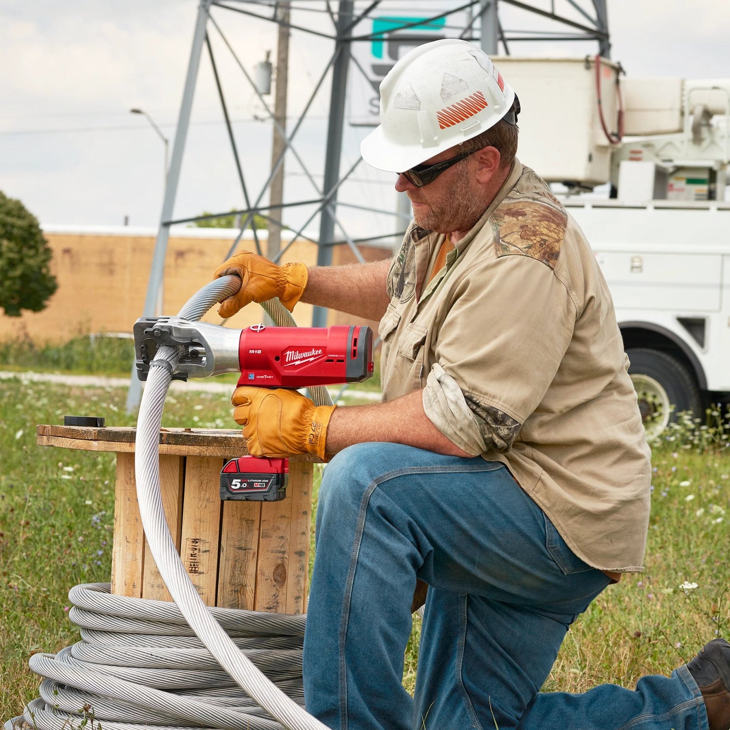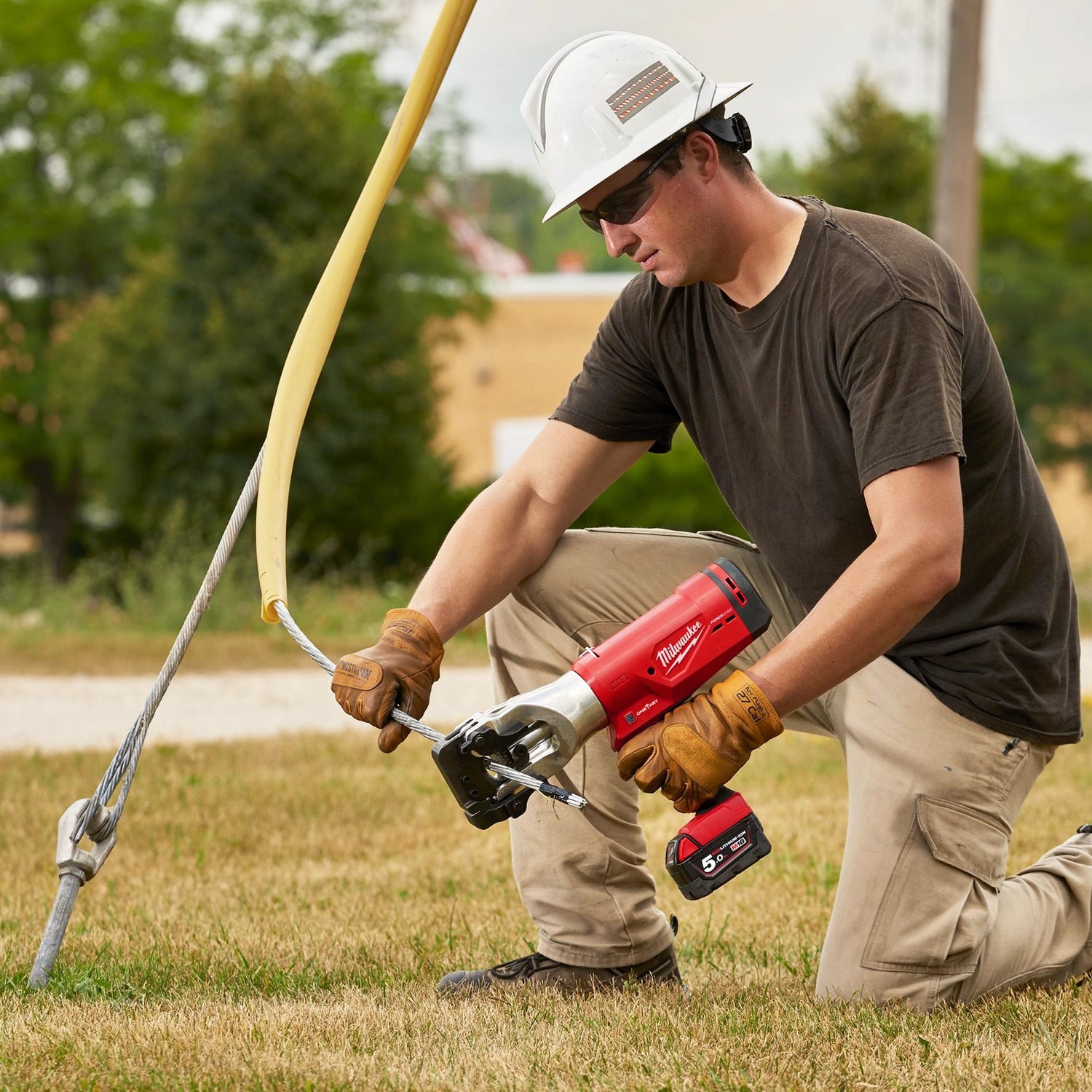 Cable cutter Milwaukee M18 HCC45-0C 18V, FORCE LOGIC for cutting ACSR/ACSS cables in less than 9 seconds with 77.8 kN of force. Patent-pending jaw design allows for opening with just two fingers, improving alignment while providing the easiest operation with Class 3 gloves