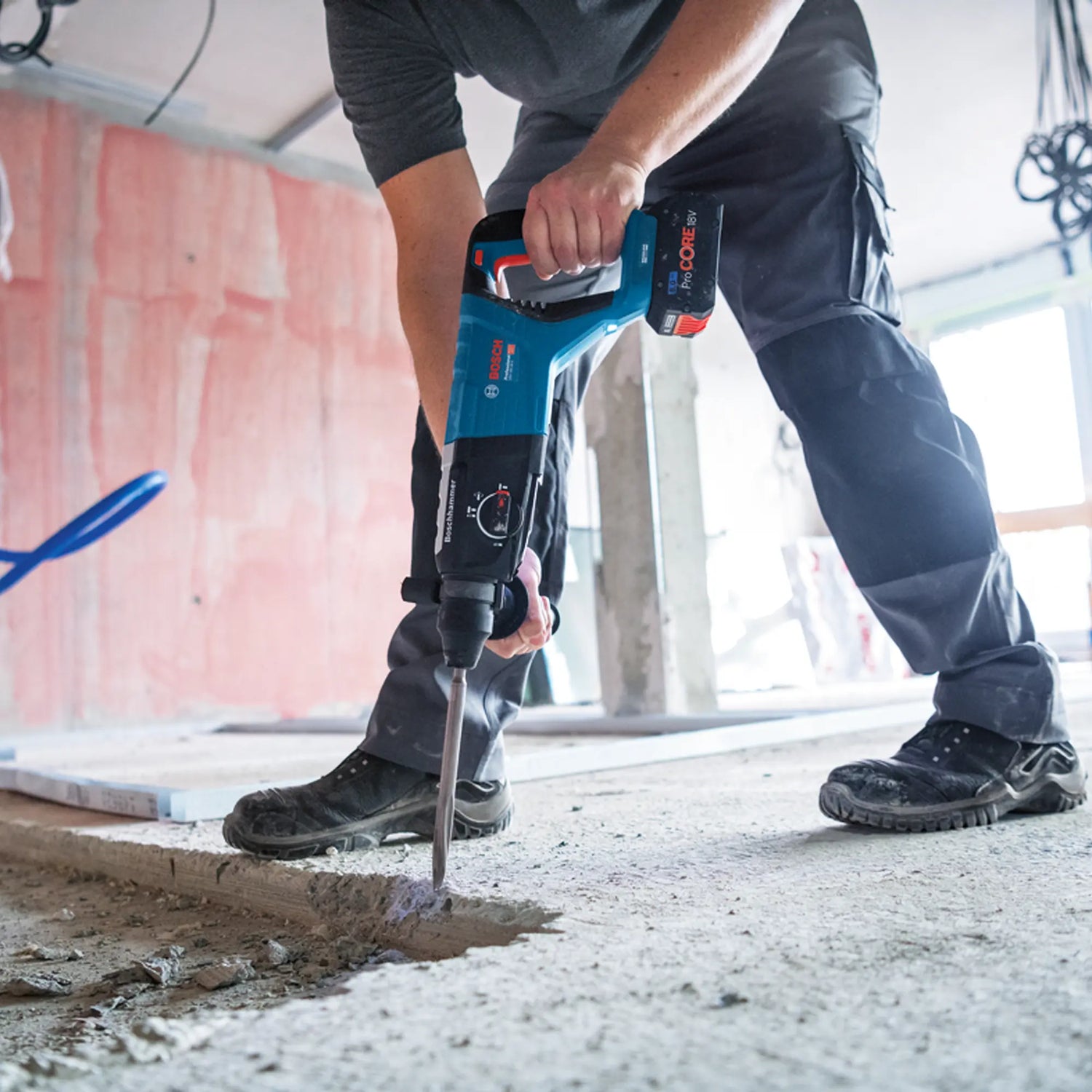The Cordless Hammer Drill Bosch GBH 18V-28 D is designed to deliver exceptional performance in professional drilling and chiselling applications. Thanks to its brushless motor, this tool delivers a 3.4 Joule impact force, exceeding the performance of the GBH 2-28 corded model.