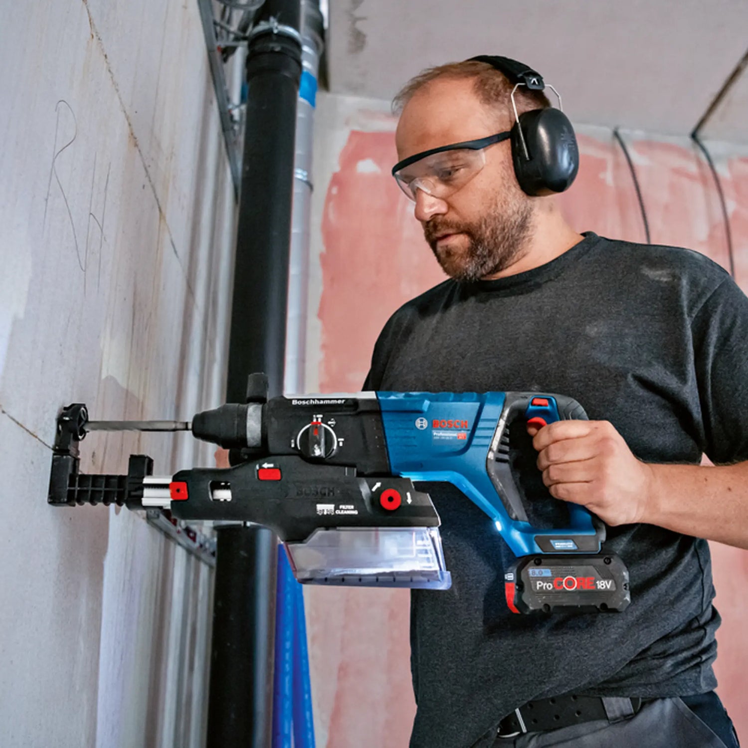 • Compatibility with Suction Systems: It is compatible with the optional GDE 28 D dust extractor, which enables dust-free drilling, keeping the work area clean.