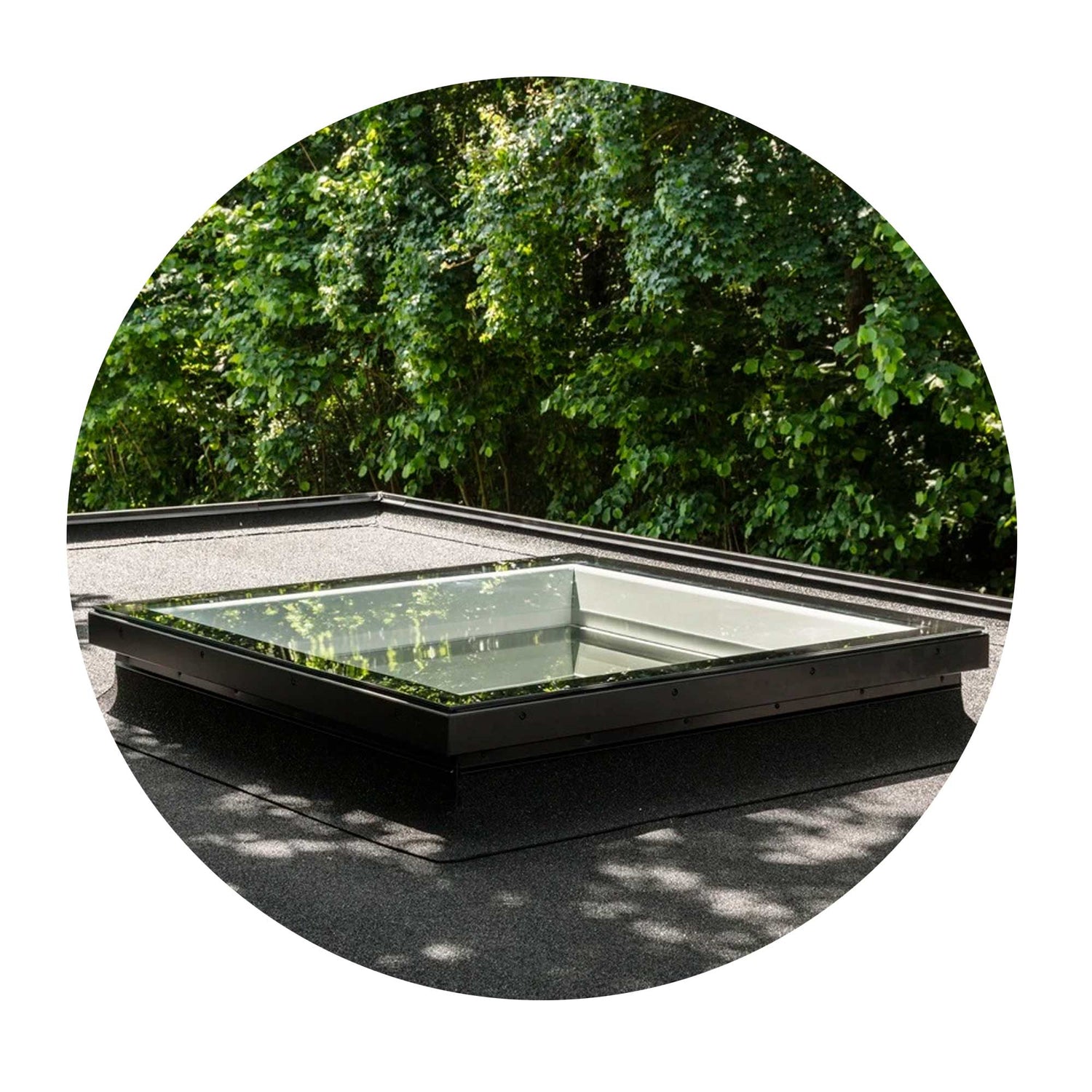 The Tempered flat glass VELUX for CFU/CVU units It is the perfect solution to complete the elegant and efficient finishes of the new generation flat roof windows.