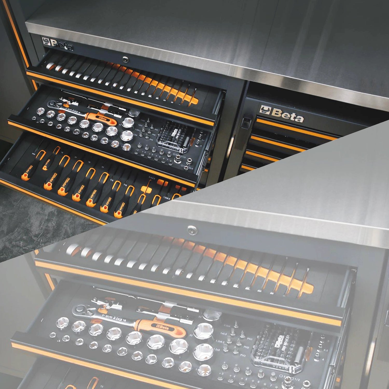THE'Tool assortment Beta 268 UT C45PRO SOFT BW It is the ideal solution for professionals and workshops looking for a complete and tidy set of tools. Consisting of 268 tools Beta of the highest quality, is organised in practical soft EVA trays, perfectly compatible with the furnishing systems Beta C45PRO. A smart choice to increase efficiency, precision and order in the workplace.