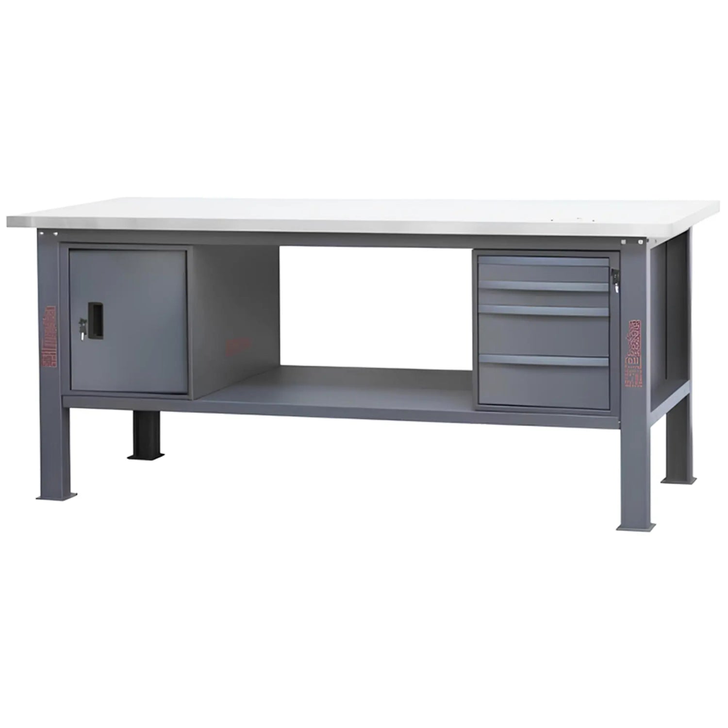 The Beta The C58BC-X2,1 4CA is designed to create a complete and functional workstation, with a stainless steel-covered MDF top, 4 drawers on ball-bearing telescopic slides, and a cabinet with a door. Thanks to its steel structure and load capacity of up to 800 kg, it is suitable for heavy-duty work and intensive use.
