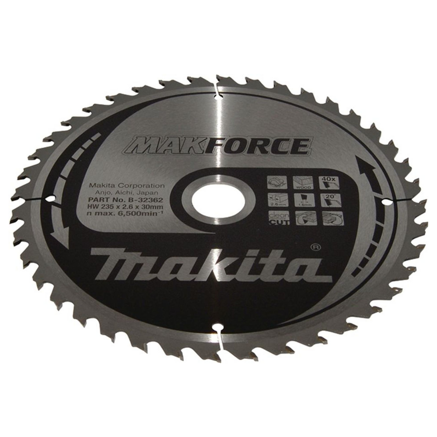 • 1 Makita B-32362: lama circolare Makforce T.C.T. 235mm 40 denti per taglio legno.