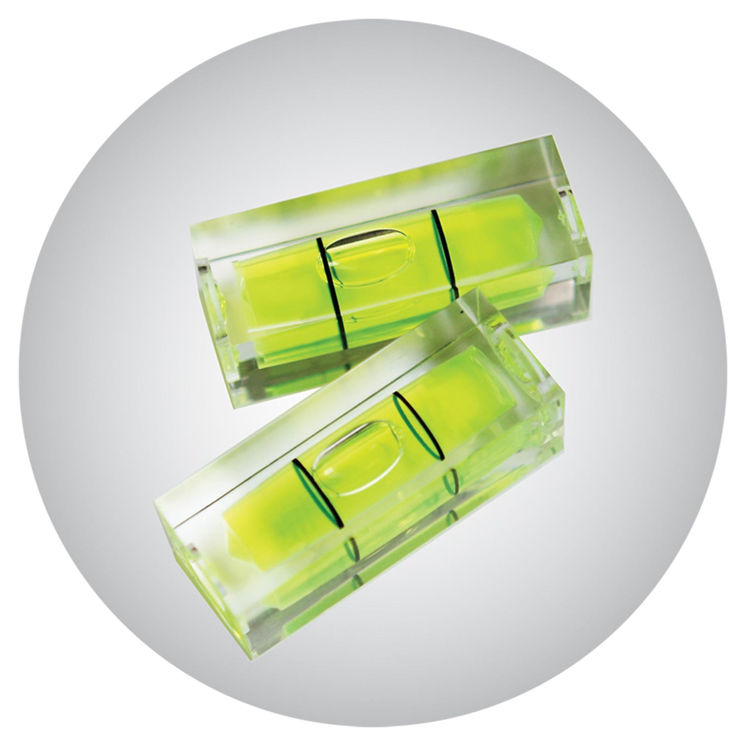 • Bubble vials made of shock-proof acrylic material calibrated with maximum precision at 0.5 mm/m (0.029°)
