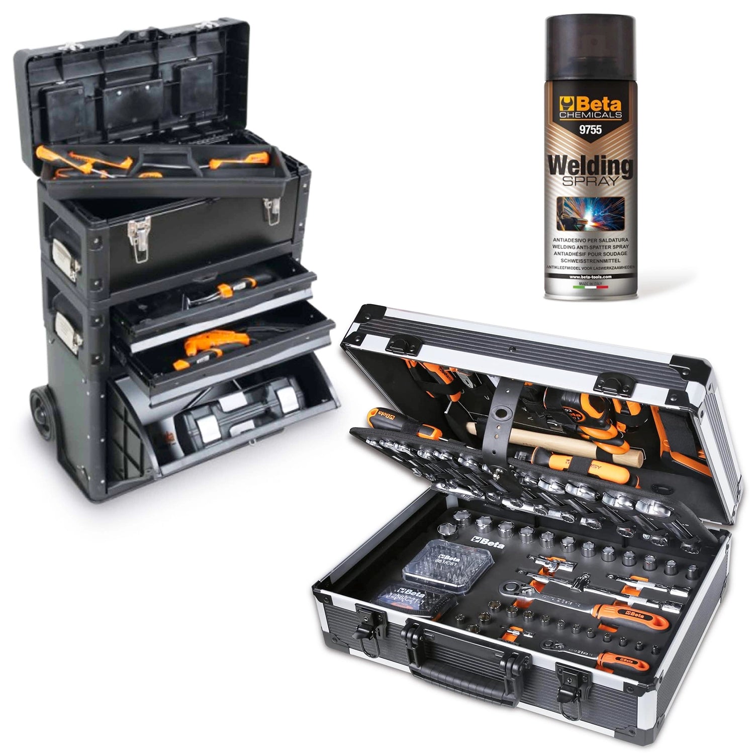 The Bundle Beta 2056E+BW4300E/21 is the ultimate solution for those looking for a complete system of transport and organization for work tools. Perfect for professionals who need an efficient and portable storage space, this set combines the sturdiness of the Briefcase Beta 2056E with the convenience of the Trolley Beta BW 4300E/21, enriched by 212 high-quality tools. In addition, with the purchase, you receive in free anti-adhesive spray Beta 9755 to keep your tools in perfect condition.
