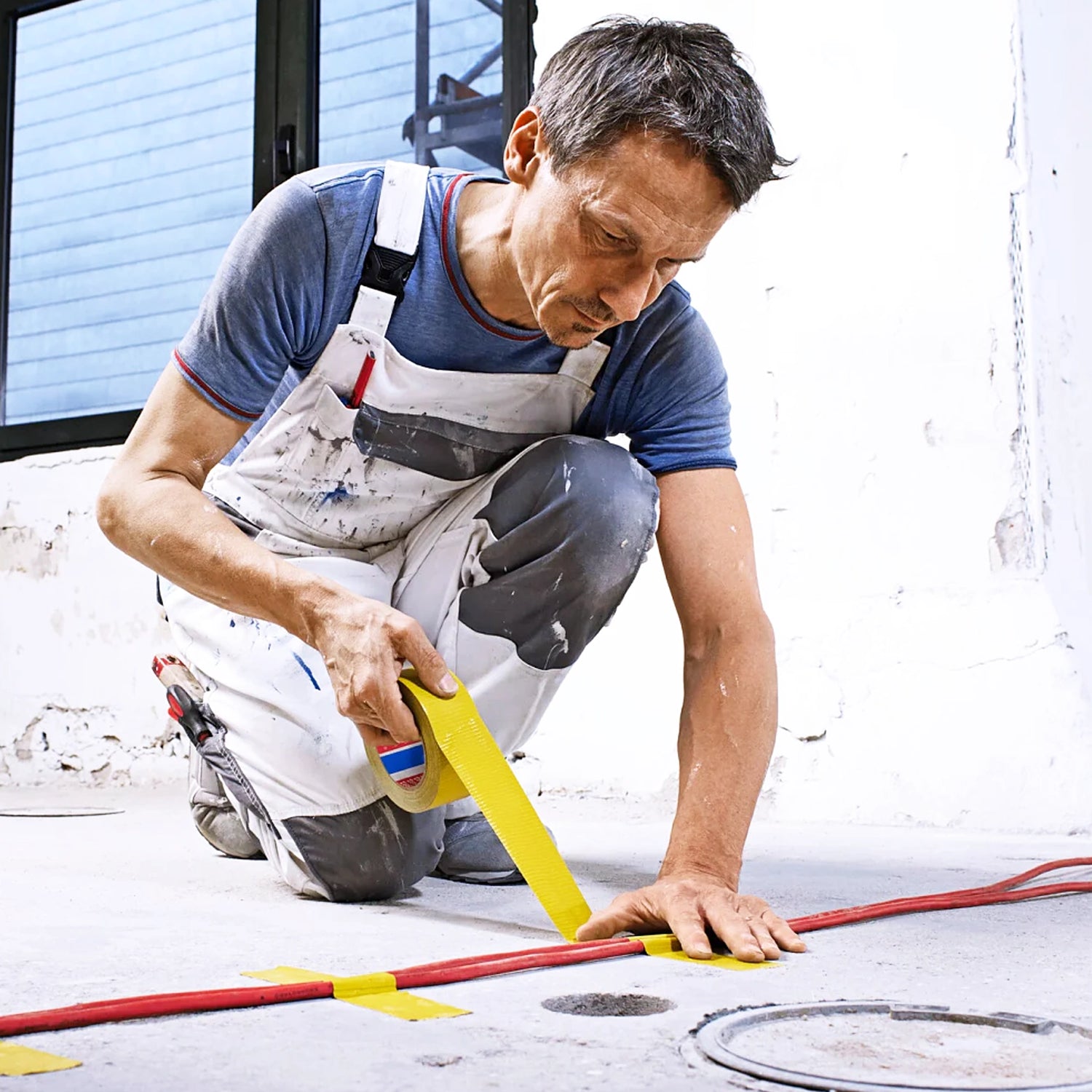 With a polyethylene-coated fabric structure and a natural rubber adhesive mass, this tape is designed to adhere firmly to rough, dusty and uneven surfaces such as concrete, brick, wood and stone. Thanks to its strength and versatility, the Tesa 4662 is perfect for construction site applications and for all those situations that require strength and durability.