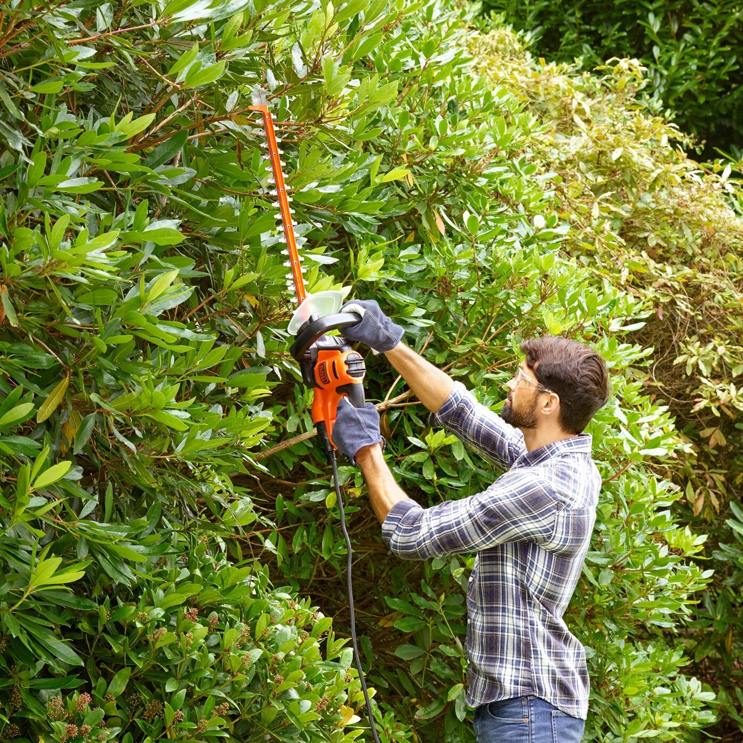 The Hedge trimmer Black+Decker BEHTS401-QS 500W It is the perfect ally for the care of hedges medium-large size. Thanks to his compact and balanced structure, offers maximum comfort during use, reducing fatigue. The serrated blade allows you to cut branches up to 35 mm in diameter, making it ideal for precise and effective pruning.