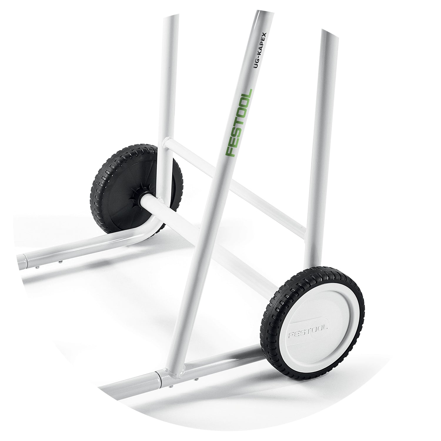 Cart Festool UG-KS 60 for KS 60, KSC 60 mitre saws. Makes the saw mobile and reduces the effort required during transport to a minimum. The enclosed wheels make it quick and easy to transport the saw from A to B: fold the saw up, insert the mitre stops and off you go.