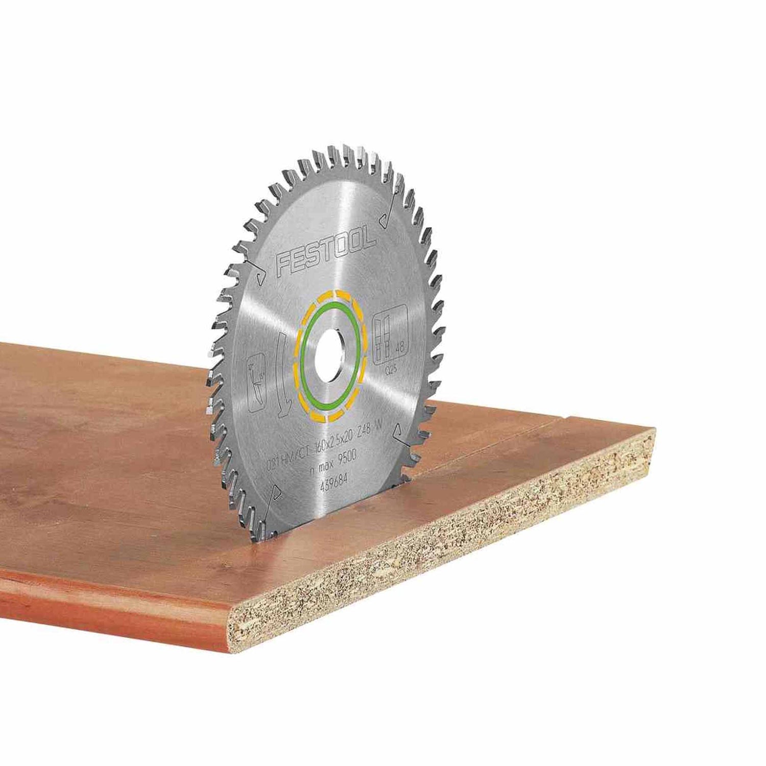 Fine-toothed blade Festool 160x2,2x20 W48, clean cuts with little tearing. Blade teeth made of high-quality material for optimum saw feed and perfect cuts. Cutting angle and tooth shape are specifically designed for the type of application and machine.