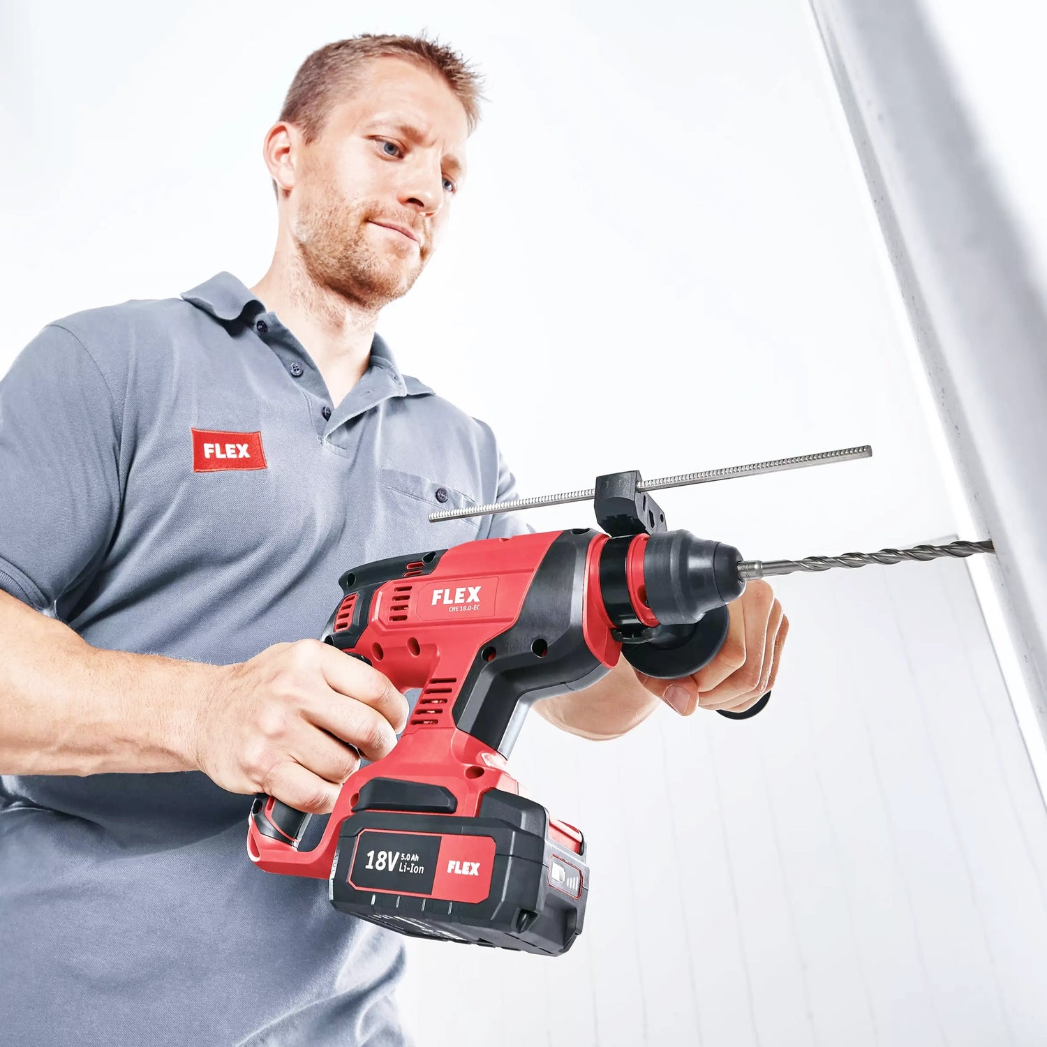 Hammer drill Flex THAT 18.0-EC C 18V, brushless motor with better performance and longer life. Four-function switch: drilling, hammer drilling, chiselling and relative fine-tuning. The Electronic Management System (EMS) protects the machine, extending its life and increasing its efficiency