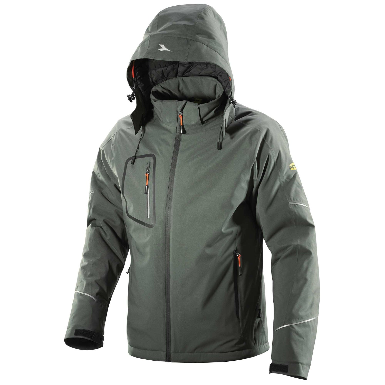 There Padded Jacket Diadora Thyme Green Cross Jacket is the perfect choice for those looking for a durable, rainproof and EN343 certified workwear item. Designed with 3M thermal wadding, this jacket offers protection against wind and water, while ensuring optimal breathability. Ideal for outdoor use in variable weather conditions, it offers maximum comfort and safety.