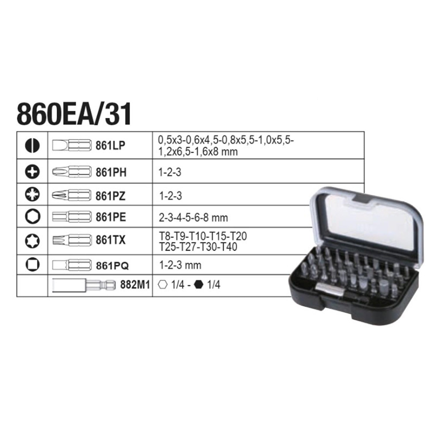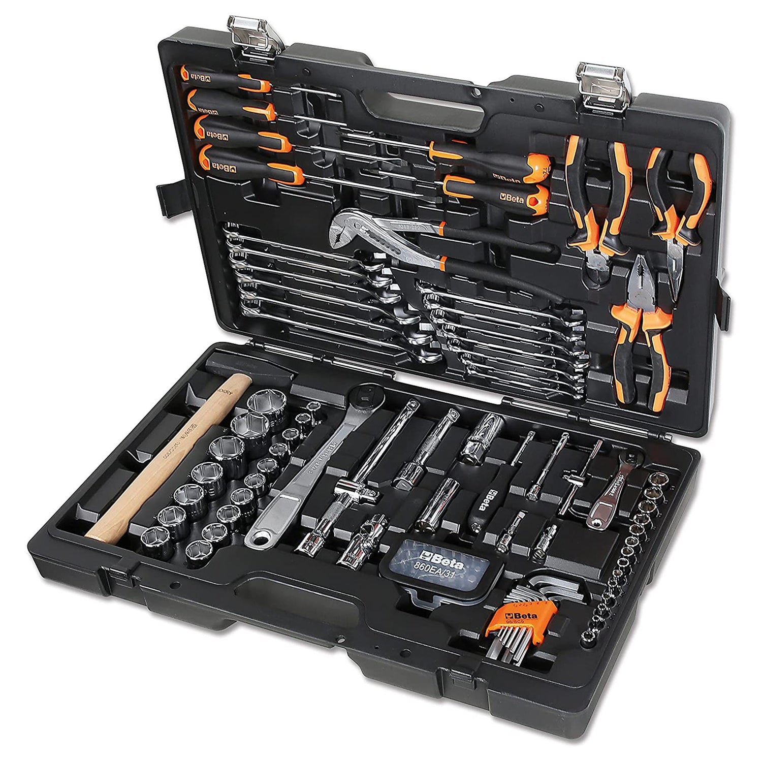 Key Case Beta 2047E C108 with 108 tools, for general maintenance. Easy to handle and lightweight, made of plastic. Contains kit 860EA/31.