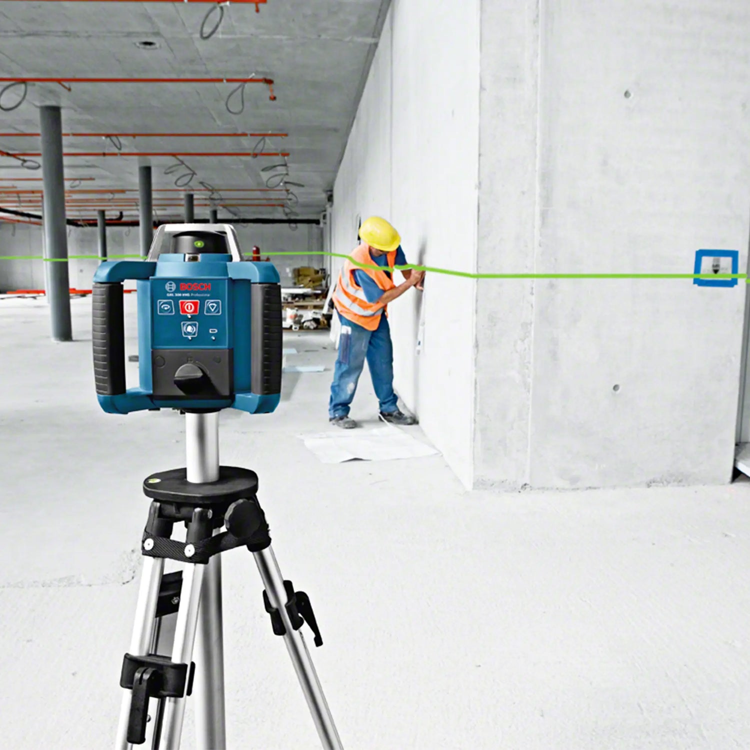 The Laser Level Bosch GRL 300 HVG + LR 1 G with receiver andexceptional visibility for indoor applications.