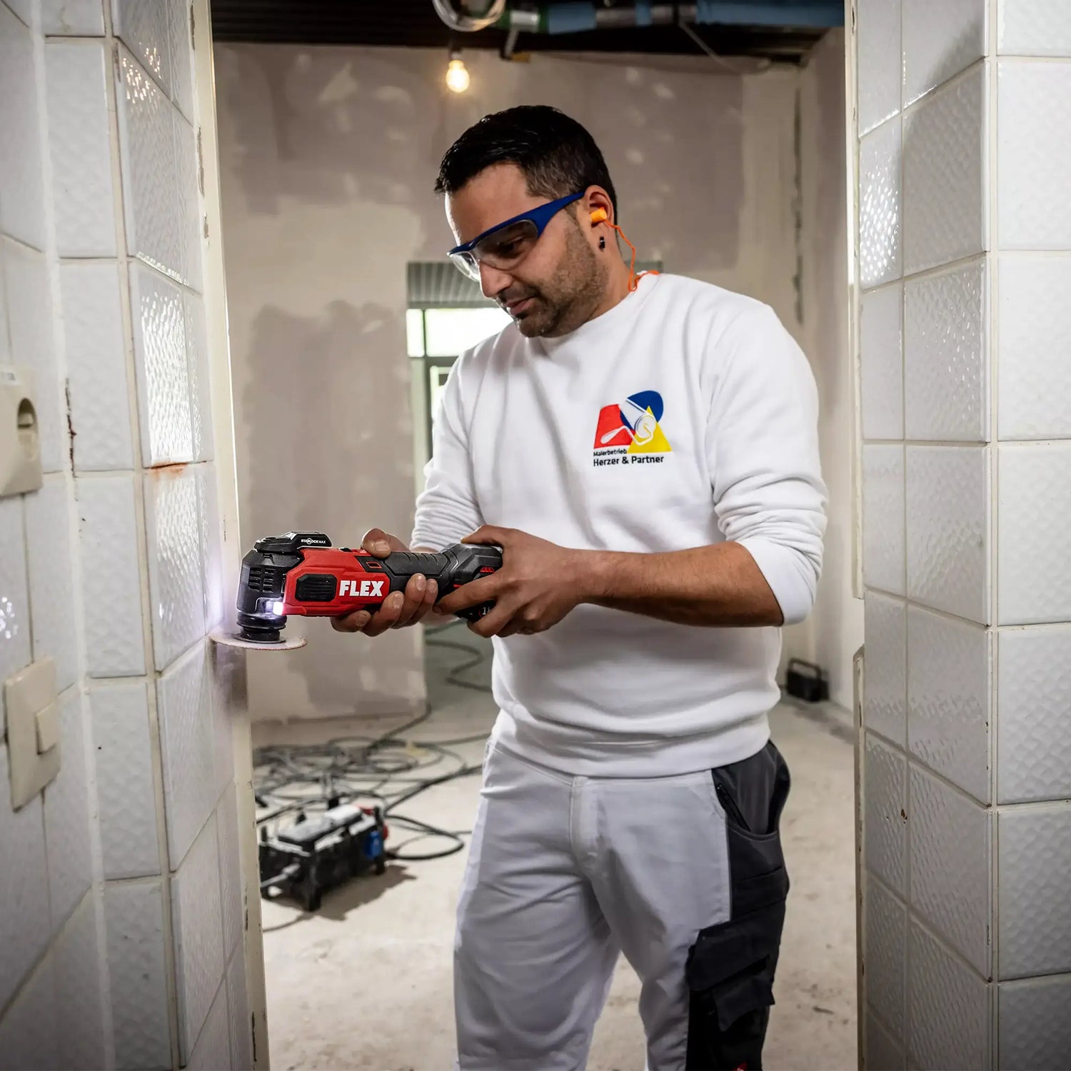 • The multifunctional tool is suitable for a variety of applications such as sawing, cutting and cutting wood, metal, plastic and plasterboard. Removing old layers of tile mortar and glue, scraping off silicone joints, paint or carpet glue, sanding profiles and in corners