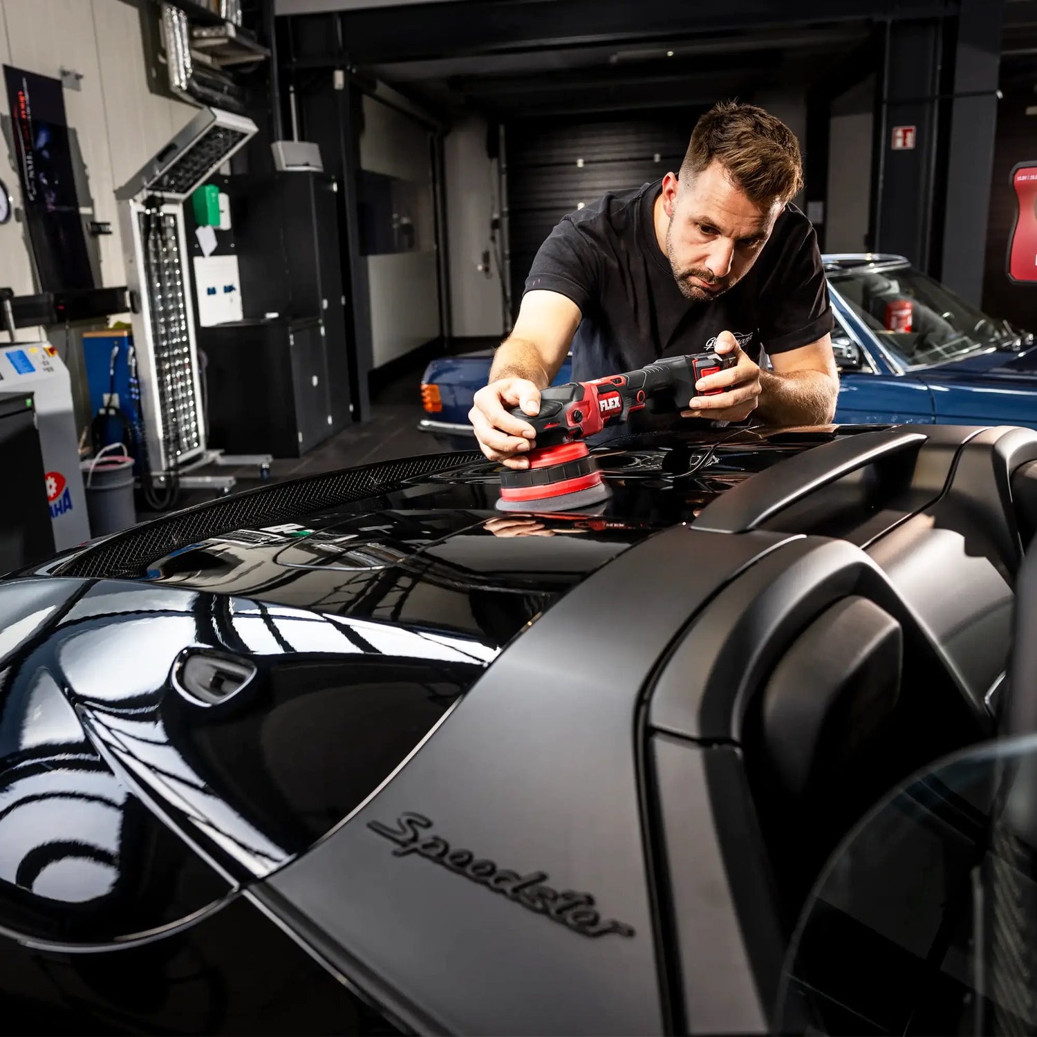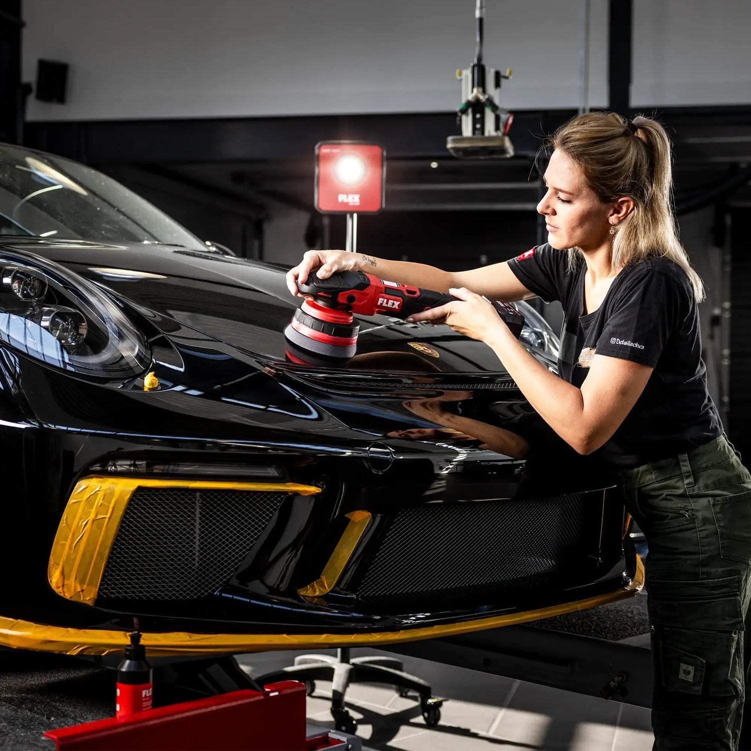 There Flex The PE 2 18-EC C 18V is designed for removing deep scratches, restoring paintwork that has been severely damaged by weather, and providing professional surface finishing. It's as powerful as a corded polisher throughout the battery life, ensuring consistent performance and maximum freedom of movement.