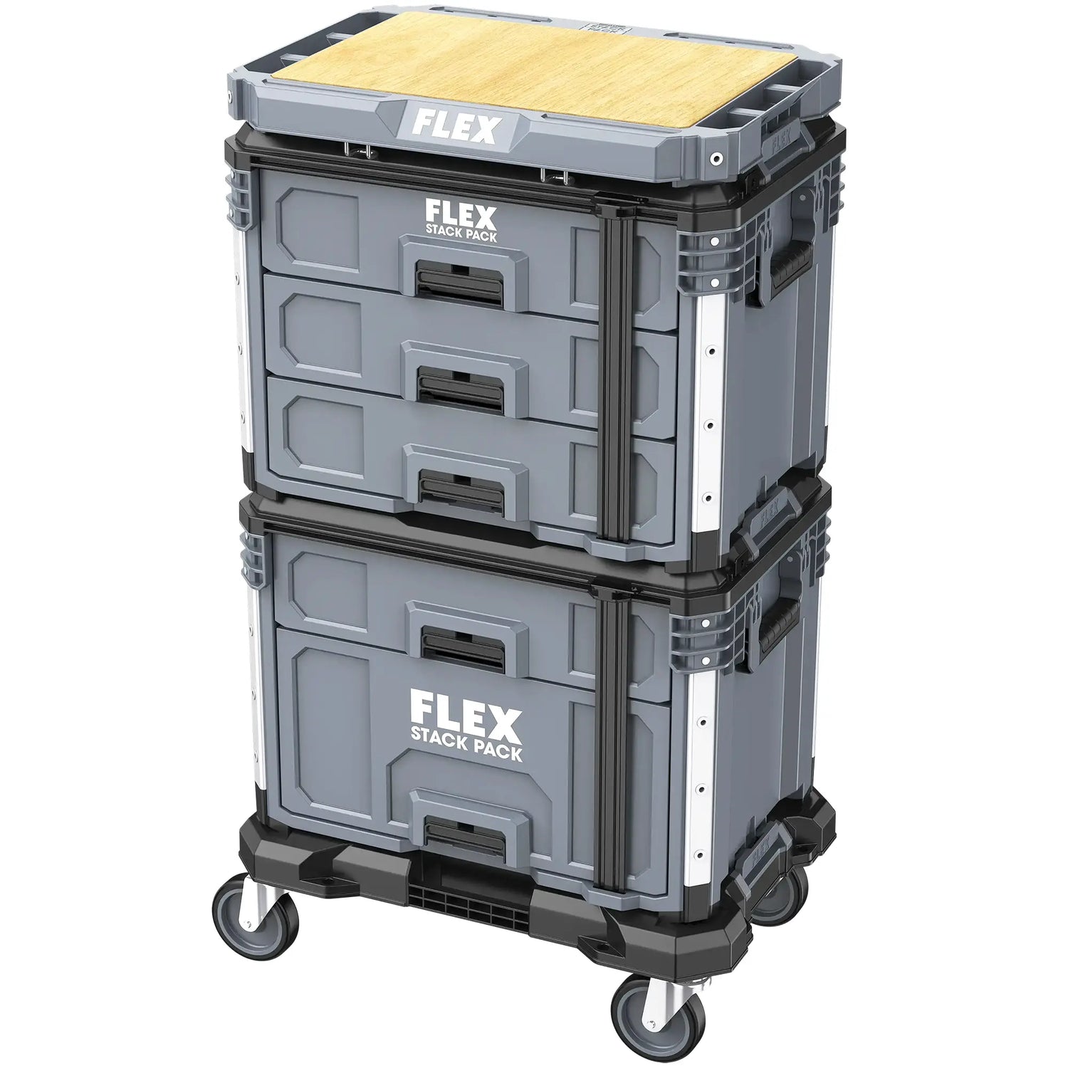 The Stack Pack suitcase set Flex TKL SP SET 2 offers robustness, protection and maximum organisation thanks to the modular system, resulting in a complete and professional solution for work on construction sites.