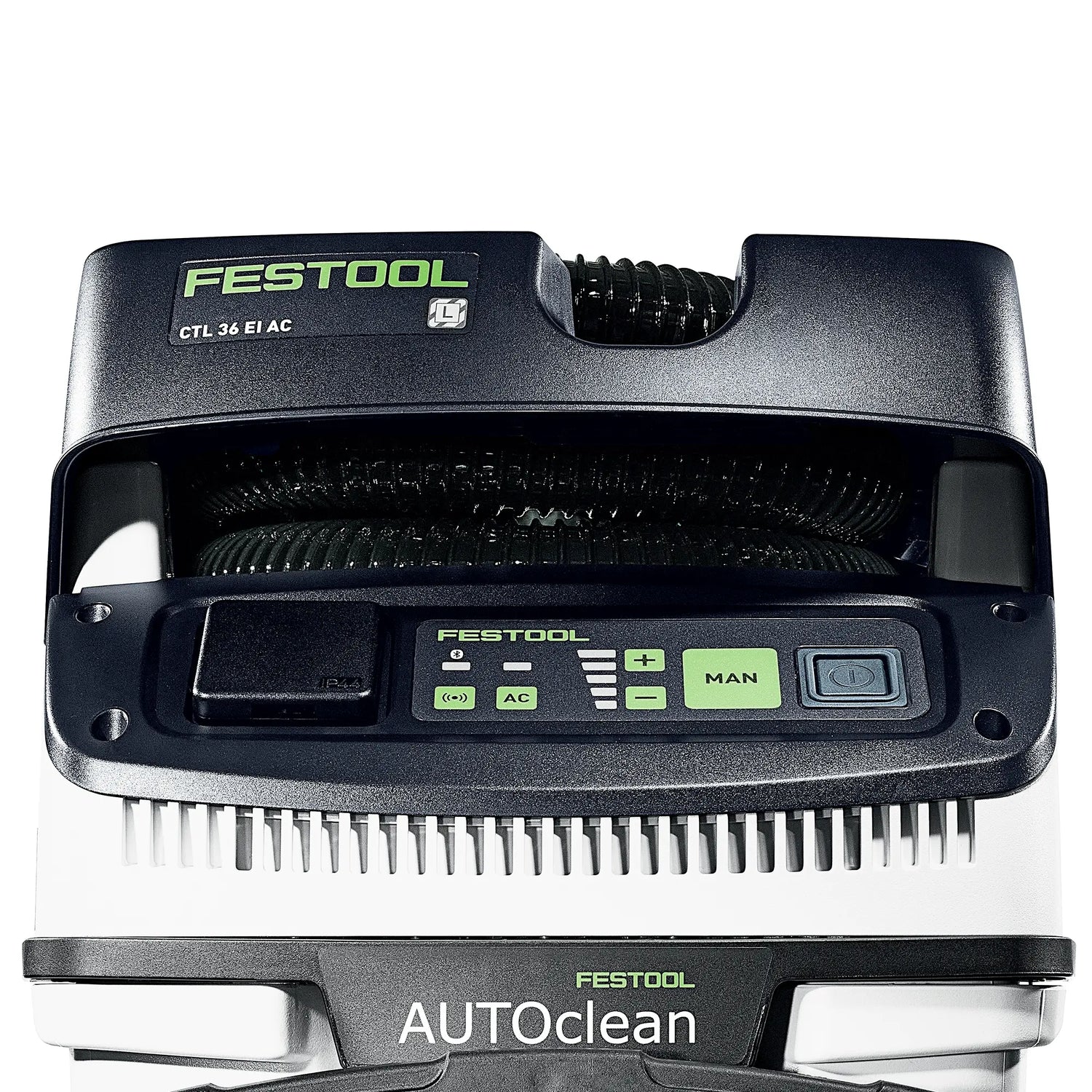 THE'Vacuum Festool CTL 36 EI AC-LHS 2400W It's a professional vacuum cleaner designed to meet the needs of those who work in environments where cleanliness and safety are essential, such as construction sites, workshops, and laboratories. Thanks to its powerful 2400W motor and automatic filter cleaning technology, this vacuum cleaner ensures high performance for sucking up fine dust and heavy materials, making it ideal for use with sanders and other power tools.