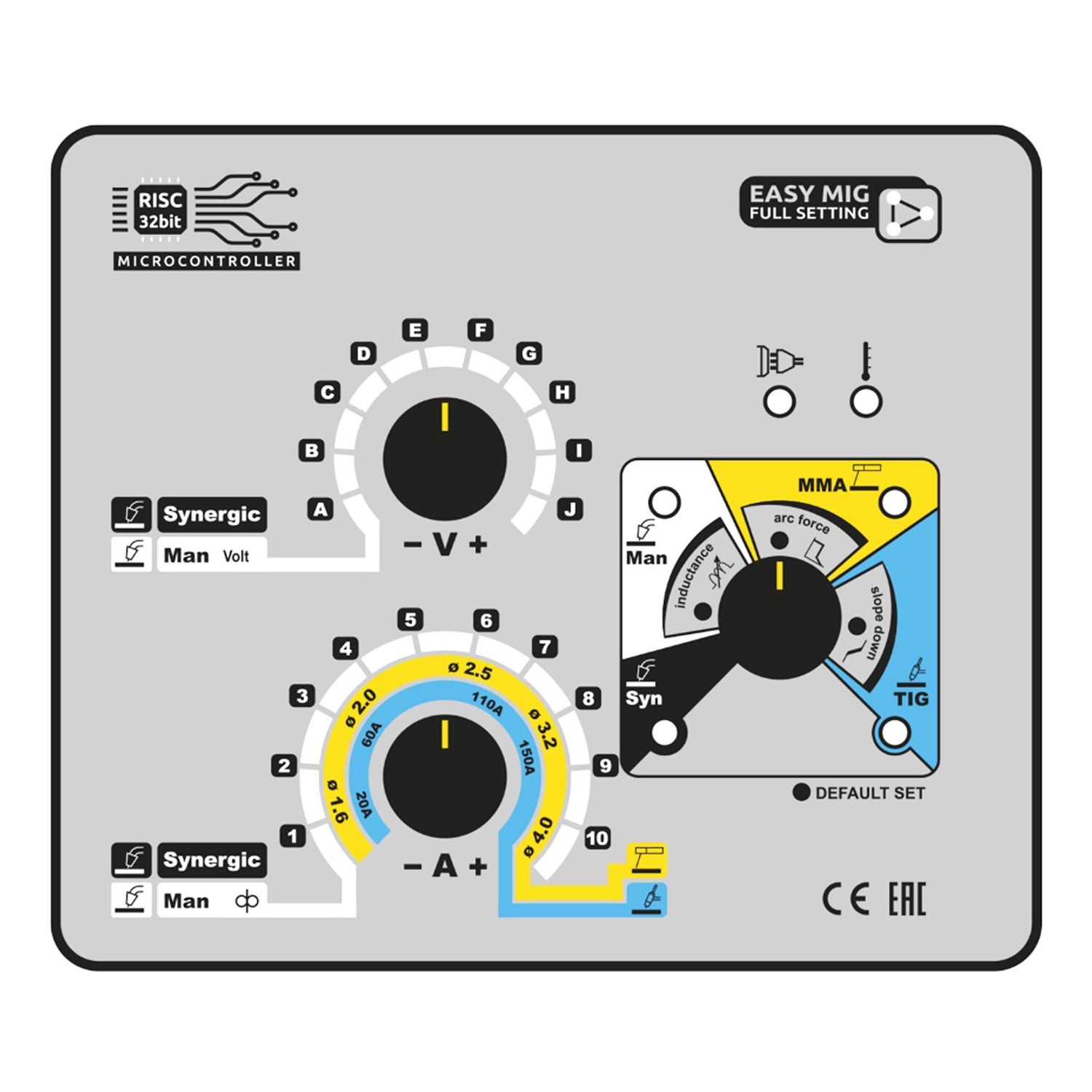 Welding plant Deca MIGA 218, The exclusive interface EASY MIG FULL SETTING allows you to weld in Synergic MIG / Manual MIG / No Gas WIRE / MMA / TIG Lift.