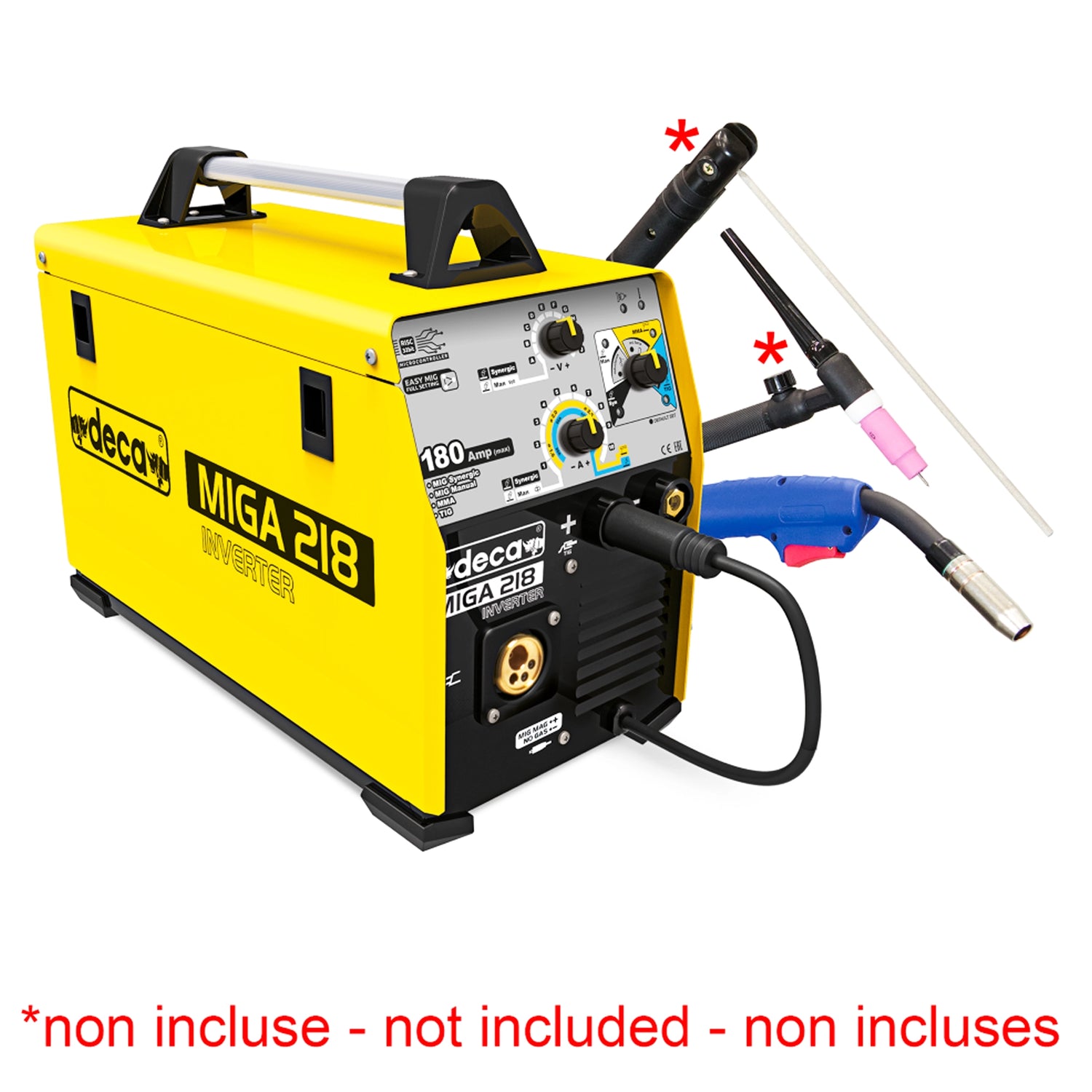 THE'Welding plant Deca MIGA 218 It is a complete and versatile solution, perfect for those looking for an easy-to-use device that offers professional performance. With the possibility of welding in MIG Synergic, MMA, TIG Lift And No Gas Wire, you can tackle any project, from precision work to more robust projects. Its compatibility with generators and low consumption also make it suitable for outdoor work or in areas with limited energy availability.